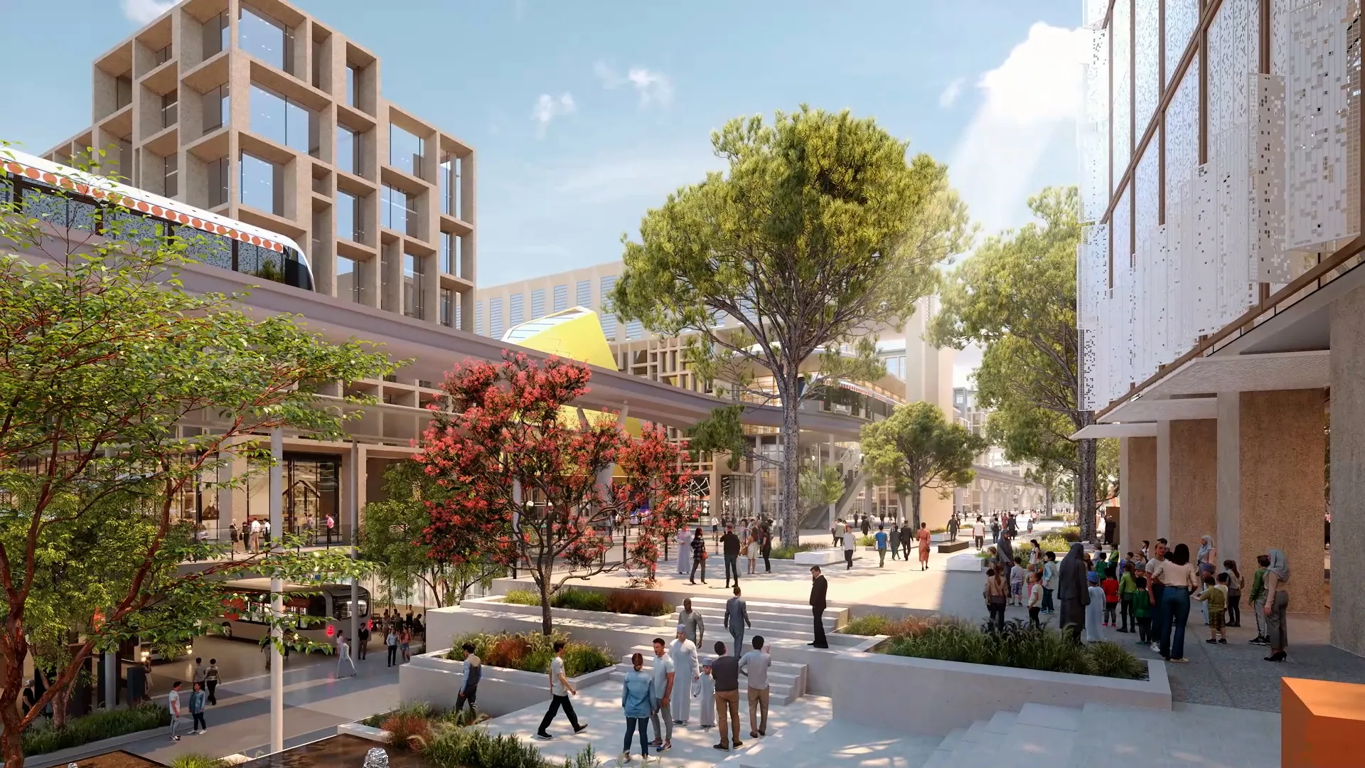 تصویر منبع: «رندر نشان میدهد که یکی از محلههای مرتبط با حملونقل سریع آینده مسقط چگونه به نظر خواهد رسید. برادوی مالیان