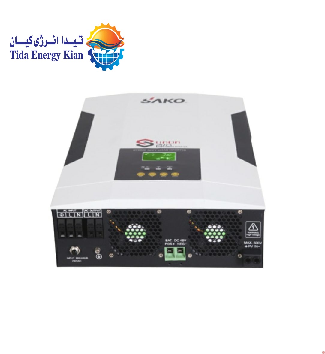 اینورتر خورشیدی ۵.۵ کیلو وات ساکو با موج سینوسی خالص ، شارژ کنترلر MPPT داخلی و پشتیبانی از باتری ۴۸ ولت مناسب برای خانه ، ویلا و محل کار با قابلیت کار با پنل خورشیدی و برق شهری و باتری